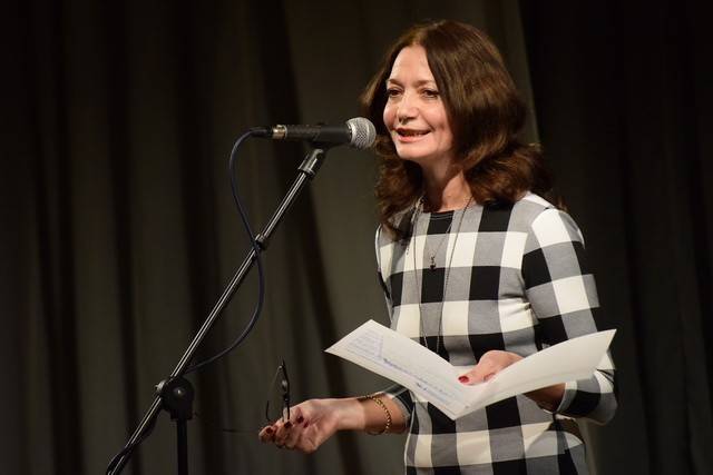 - Так на сцену я ещё не выхода никогда, – заметила Татьяна Фролова. Она зачитала приветствие собравшимся руководителя департамента культуры области Эмилии Сухачевой, поблагодарила департамент и депутата Государственной думы РФ Сергея Чижова за помощь и поддержку в организации конкурса и праздничного вечера.