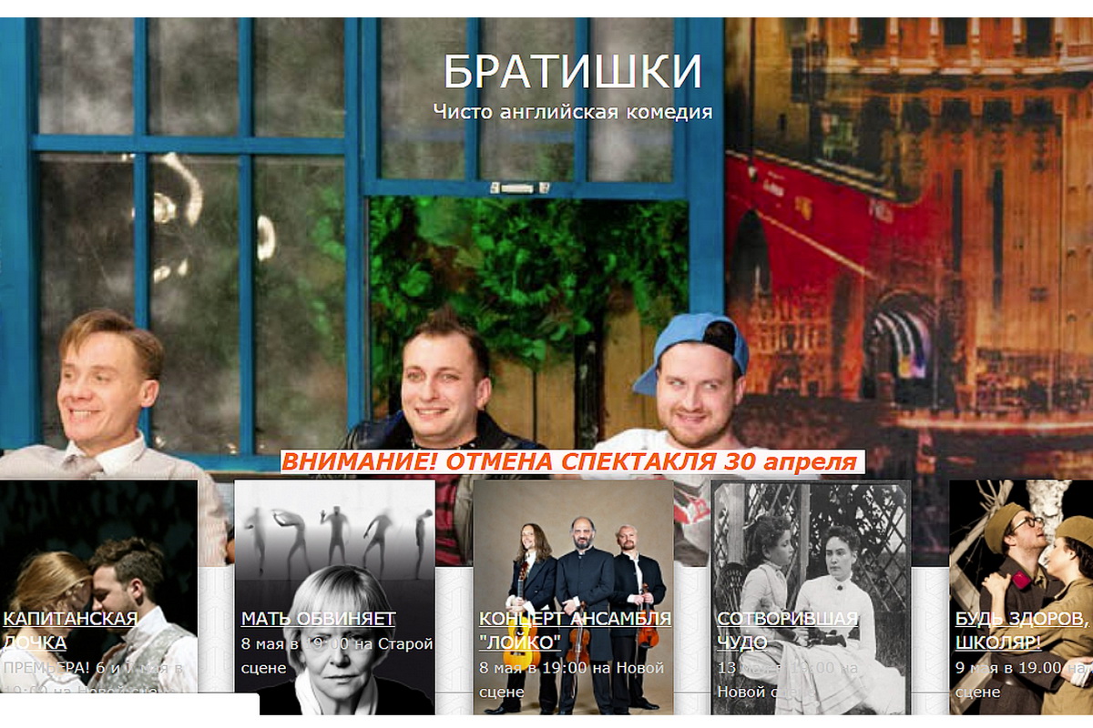 Исполняя постановление суда, во вторник, 30 апреля судебные приставы опечатали входные двери театра. О том, что театр не будет работать как минимум три месяца, дирекция не сообщает. Правда, нас сайте появилось объявление о том, что заявленный на 30 апреля спектакль «Братишки» отменяется «по техническим причинам». Билеты можно будет сдать в кассу в течение десяти дней.