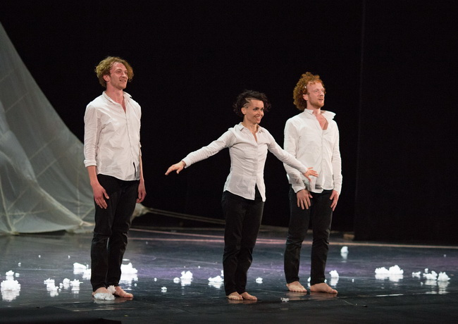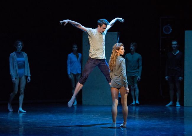 Далее были показаны два одноактных балета, поставленных в отличных друг от друга стилях современной хореографии. Спектакль «Его глазами» Марии Яшниковой – участницы программы молодых хореографов фестиваля Context. Diana Vishneva – это бессюжетное произведение, призванное через пластику тел танцовщиков раскрыть размышления автора о природе человеческого счастья.