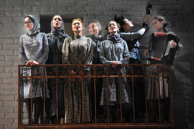 Поставил спектакль «Блаженный остров» худрук Воронежского камерного театра Михаил Бычков, сценограф – Николай Симонов. Савватия Гуску, отца семерых дочерей, сыграл Игорь Золотовицкий.