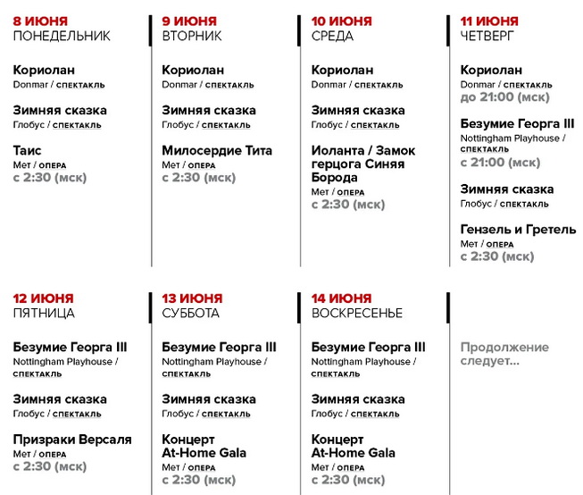 Опубликовано расписание трансляций TheatreHD/Play на неделю с 8 по 14 июня