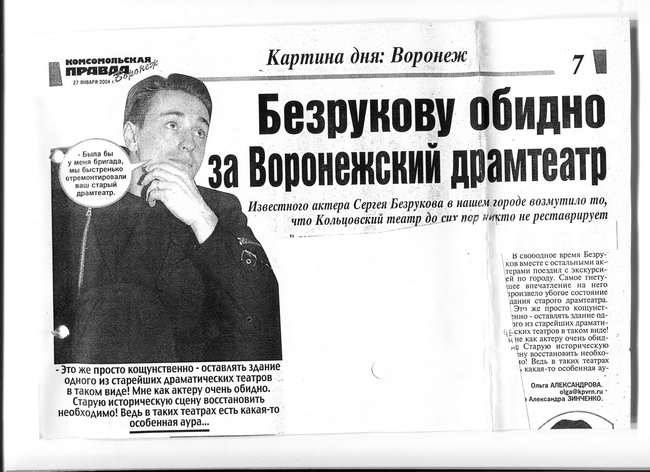Шли месяцы. Годы… Надежда таяла… В начале 2000-х в Воронеж всё чаще стали наезжать большие руководители из Москвы, а также известные актёры. Начальники, видимо, в кулуарах областной администрации выражали своё отношение к тому, что увидели в самом центре города. Мол, надо же, наконец, решать проблему. Либо сносить, в конце концов, чтоб не портило картину, либо изыскивать средства на реставрацию. Актёры, как более эмоциональные люди, более громко, через прессу выражали своё отношение. 27 января 2004 года «Комсомольская правда» опубликовала весьма эмоциональное возмущение известного артиста Безрукова, ставшего затем частым гостем в нашем городе. В нем, среди прочего: «Была бы у меня бригада, мы быстренько отремонтировали бы ваш старый драмтеатр».