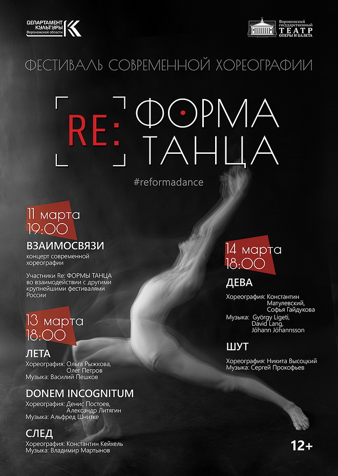 С 11 по 14 марта в Воронеже во второй раз пройдёт фестиваль современной хореографии «RE:Форма танца». Автор идеи и художественный руководитель проекта – худрук и главный балетмейстер Воронежского театра оперы и балета, заслуженный артист Воронежской области Александр Литягин.