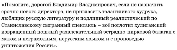 Путина просят изгнать Боякова из МХАТа имени Горького
