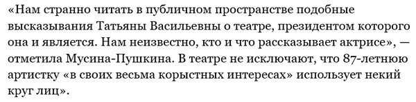 В комментариях к этому посту Мусиной-Пушкиной лояльные Боякову пользователи возмущаются, что Доронина получает большую зарплату и ничего не делает.