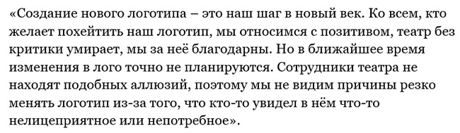 Изданию «Подъём» в театре объяснили, что гордятся своим логотипом: