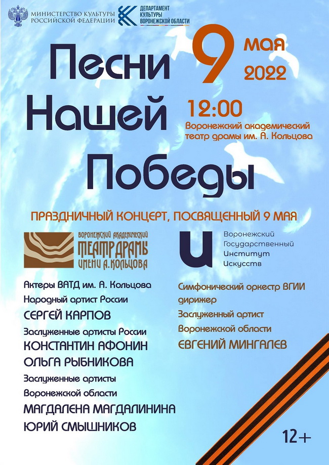 В 77-ую годовщину Победы в Великой Отечественной войне на большой сцене Кольцовского театра состоится бесплатный концерт для жителей и гостей города.