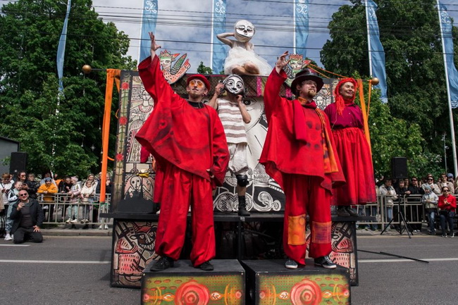 Удивляя разнообразием технических секретов, таящихся в декорациях, артисты продемонстрировали весь арсенал своих навыков, приобретённых на лаборатории уличного театра и закреплённых во время ежедневных репетиций в течение нескольких месяцев работы. Среди этих умений – работа с маской, владение ходулями и джамперами, взаимодействие с публикой.