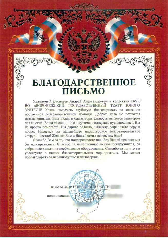 Директор Воронежского ТЮЗа передал бойцам СВО гуманитарную помощь с пожеланиями от юных зрителей театра