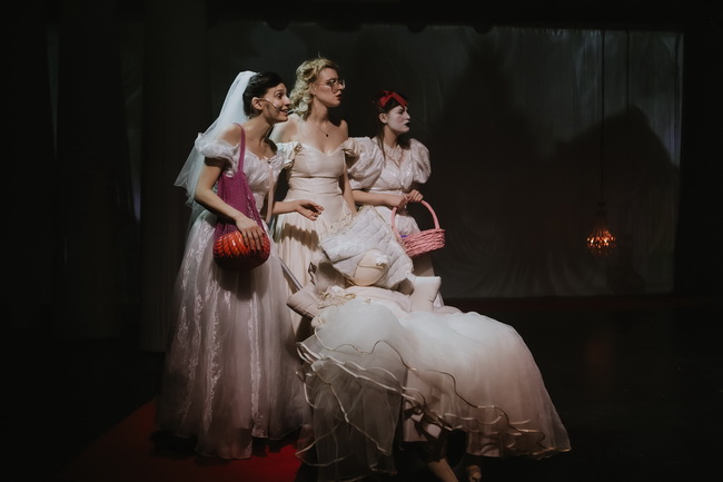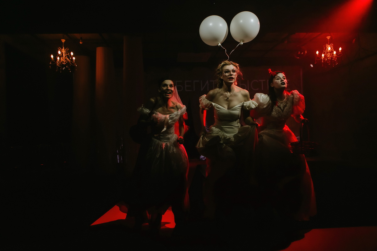 Хотя сюжет спектакля переиначивает привычные литературные мотивы — декорации, созданные художником Евгенией Платоновой, погружают зрителей в сказочную, волшебную атмосферу. Принцессы в белых, воздушных платьях тоже кажутся сошедшими со страниц любимых с детства книг. Только, увы, девушки не в сказку попали — в суровой реальности, чтобы найти принца, нужно преодолеть немало испытаний.