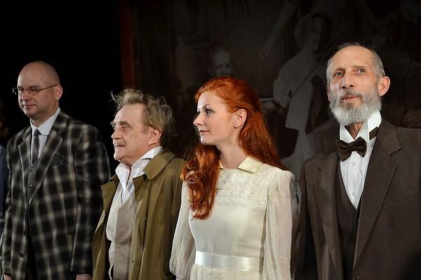 В прологе из темноты выходят герои спектакля и вглядываются куда-то поверх голов зрителей. Словно пытаются разглядеть будущее. Что принесет с собой завтрашний день? В отличие от искушенных зрителей, они этого не ведают. И погружаются в обычные домашние хлопоты, чтобы заглушить нарастающую в душе тревогу. Веселая суета, которой сопровождается празднование 70-летнего юбилея советника Клаузена, не может заглушить странных звуков, время от времени нарушающих идиллическую атмосферу богатого дома (обрыв струны, случайный выстрел?). Только-только оправившийся после гибели жены Маттиас то и дело обращает свой взор на большую семейную фотографию (художник-постановщик Михаил Викторов).