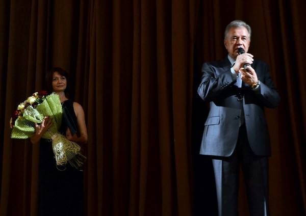 Затем на сцену поднялась руководитель отдела региональных и межрегиональных программ СТД РФ Ирина Антонова вместе с секретарем творчесого Союза, председателем Тамбовского отделения СТД Сергеем Левандовским. Они огласили приветствие председателя СТД РФ Александра Калягина и решение секретариата Союза театральных деятелей России о награждении директора Воронежского Дома актера Натальи Поливаевой Золотым знаком СТД РФ. Это всего лишь восьмая подобная награда за всю историю творческого Союза. Зал приветствовал Наталью Николаевну оглушительными аплодисментами.