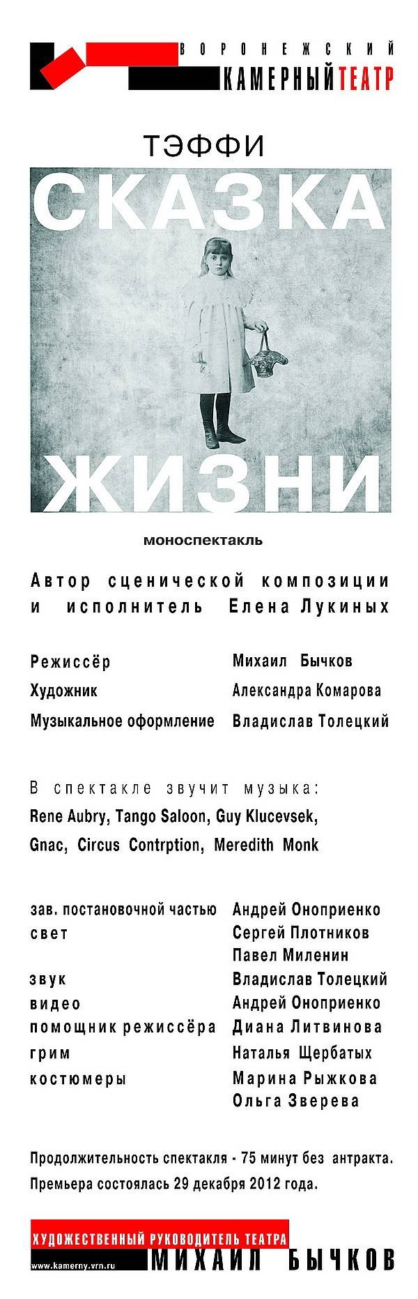 Под занавес года в Воронежском Камерном театре показали премьерный спектакль «Сказка жизни» по рассказам и стихотворениям Тэффи (Надежды Александровны Лохвицкой) – русской писательницы и поэтессы, закончившей жизнь в эмиграции.