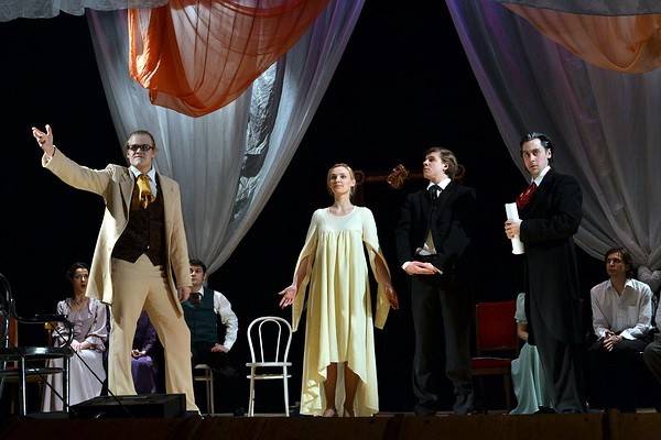 Художественный руководитель Воронежского академического театра драмы имени Кольцова поздравил всех собравшихся с Днем театра и предложил посмотреть действо с участием молодых актеров.
