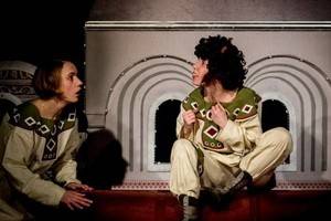 «Скрипка, бубен и утюг» - недавняя пьеса плодовитого Николая Коляды. Ей всего полтора года. И, конечно, она полна примет сегодняшнего дня. Родовых пятен окружающей нас действительности в этом произведении не счесть. Буквализм и натуралистичность легко могут погубить постановку.