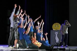 3 декабря на сцене Концертного зала Воронежского государственного университета (ул. Хользунова, 40а) выступил “Театр равных” со спектаклем “Кот на крыше”. Пьесу специально для труппы написал профессор ВГУ доктор филологических наук Дмитрий Чугунов. Произведение повествует о жизни небольшого провинциального города. Все действие разворачивается в одном дворе, жители которого переживают разные драмы.