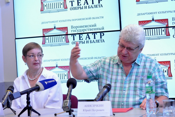В Воронежском доме журналистов прошла пресс-конференция с участием музыкального руководителя и главного дирижёра Воронежского государственного театра оперы и балета Юрия Анисичкина и специалиста по связям с общественностью, руководителя пресс-службы театра Ольги Пепельниковой.