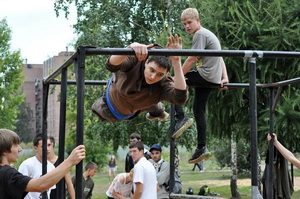 Как только перестал дождь, на множестве площадок вокруг торгово-развлекательного комплекса развернулись соревнования в таких дисциплинах, как паркур, стритбол, воркаут, cлеклайн, армрестлинг, а также показательные выступления роллеров.