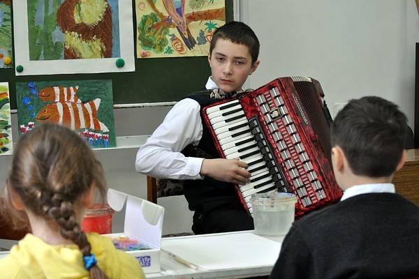 В самом начале воспитанников интерната ждал небольшой концерт. Перед ребятами выступил юный, но уже титулованный воронежский аккордеонист Костя Чаусов.