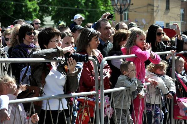 В этом году в праздновании 9 мая принимают участие многие тысячи воронежцев - от младенцев до глубоко пожилых людей. Приходят семьями, дружными компаниями. Играет музыка, сверкают в лучах солнца ордена и медали военнослужащих и самых дорогих гостей праздника – ветеранов.