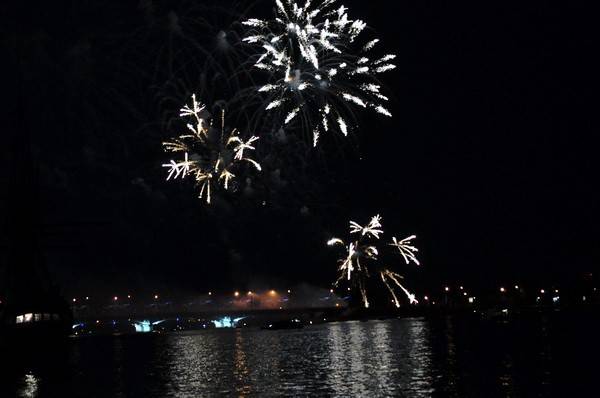 К тому же оказалось, что можно совместить два шоу – фестиваль «Огни Победы». который проходил на Адмиралтейке, и праздничный фейерверк. Многие наблюдали оба зрелища одновременно.