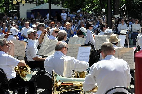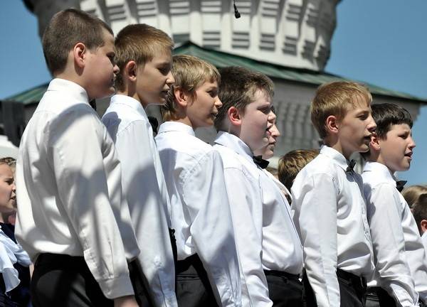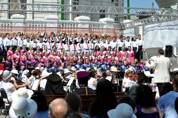 Впечатляющим получилось совместное выступление сводного хора детских школ искусств и симфонического оркестра. Основу репертуара в этом году составила советская песенная классика и произведения Александры Пахмутовой, которая в этом году отмечает юбилей.