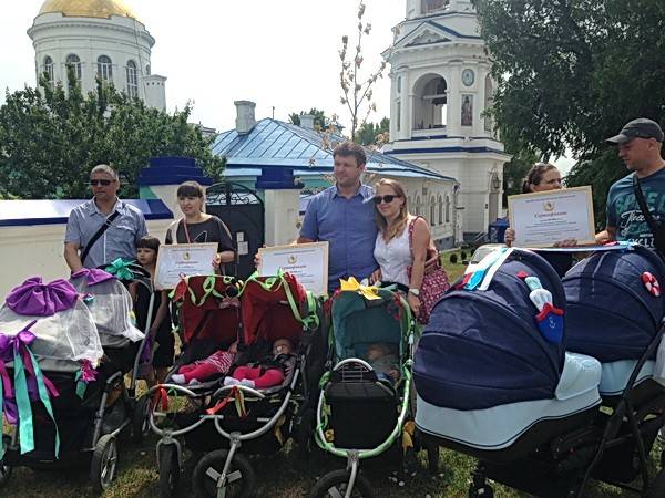 Отдельные денежные сертификаты от Алексея Гордеева и правительства Воронежской области с формулировкой «за активную жизненную позицию и вклад в улучшение демографии» были подарены родителям, которые пришли на парад со своими недавно родившимися двойнями и тройнями.