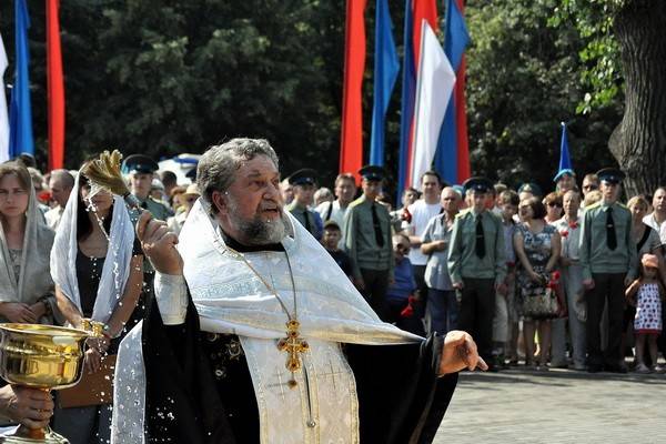 После этого протоиерей Петр Петров освятил памятник, окропив его святой водой.