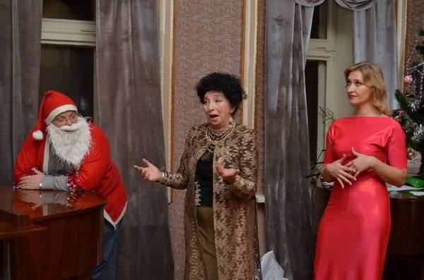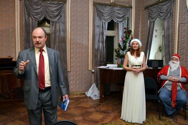 Артисты создавали новогоднее настроение: Мария Дюжинкова обаятельно исполнила рассказ Бунина «Второй кофейник», вокальные новогодние поздравления адресовали публике Елена Петриченко и Таисия Усольцева, а Михаил Лобас и Сергей Пыльнев представили две композиции Елизаветы Ткачевой на стихи Ивана Щелокова и Иосифа Бродского в фортепианном сопровождении автора.