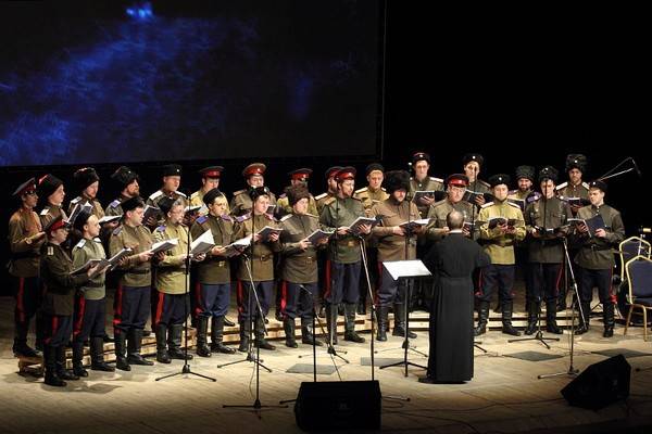 В исполнении митрополичьего мужского хора «Символ веры» под управлением регента диакона Серафима Дубанова прозвучали церковные песнопения, русские, украинские и польские народные песни, задорный казачий фольклор.