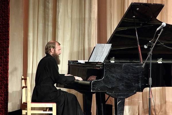 После торжественной части место за роялем занял диакон Димитрий Ушаков, и в исполнении хора прозвучали религиозные хоровые произведения и народные песни.