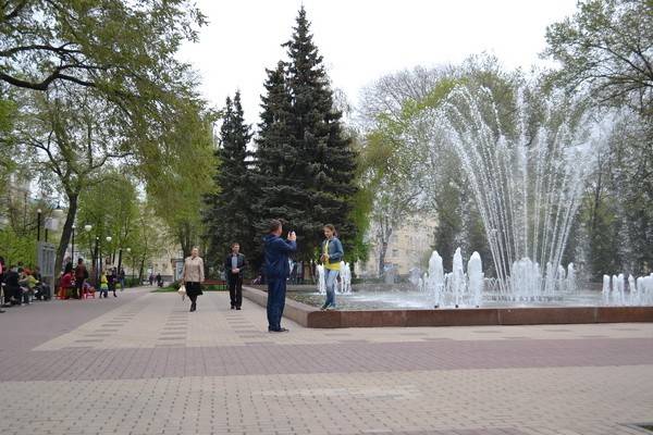 Первым пунктом праздничной первомайской программы значилось открытие фонтана в Кольцовском сквере. К десяти утра к водоёму подгребли немногочисленные фотокорреспонденты. К примеру, мой коллега Виктор пришёл, чтобы сделать несколько снимков открытия фонтанного сезона.