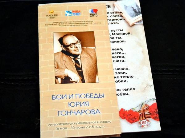 6 мая в областном литературном музее имени И.С. Никитина открылась выставка «Бои и победы Ю.Д. Гончарова», приуроченная к 70-летию Победы в Великой Отечественной войне. В двух выставочных залах «Мещанской управы» впервые столь широко представлены материалы о жизни и творчестве замечательного писателя-фронтовика.