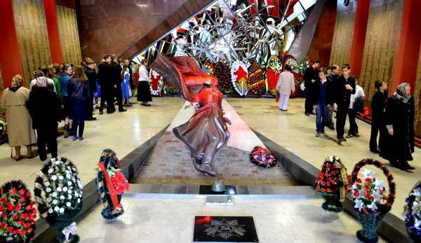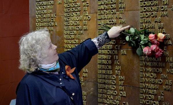 Сотни человек пришли в Зал Памяти, где на стенах высечены тысячи имён погибших защитников Воронежа.
