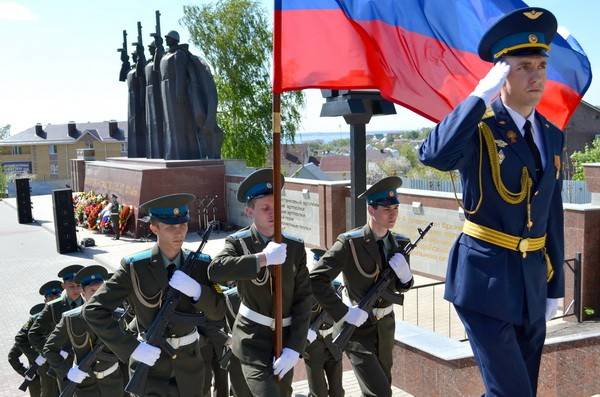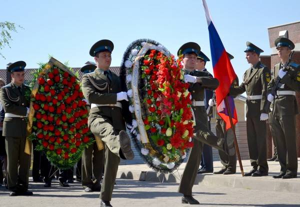 Торжественным маршем с отданием воинских почестей воинам, захороненным в братской могиле № 1, прошёл Почетный караул от Военно-Воздушной Академии имени профессора Н.Е. Жуковского и Ю.А. Гагарина. Прозвучал оружейный салют и Государственный Гимн Российской Федерации.
