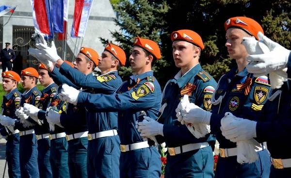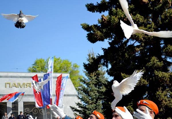 Курсанты Воронежского института ГПС МЧС России выпустили на свободу белых голубей.