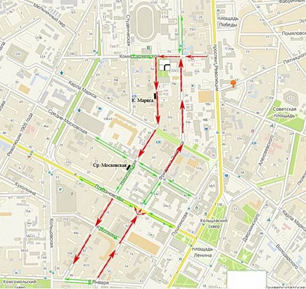 Интересно, что участок улицы Фридриха Энгельса от Плехановской до Средне-Московской остается двусторонним. Так же, как и участок улицы Никитинской от Средне-Московской до Плехановской. Какое умное решение!