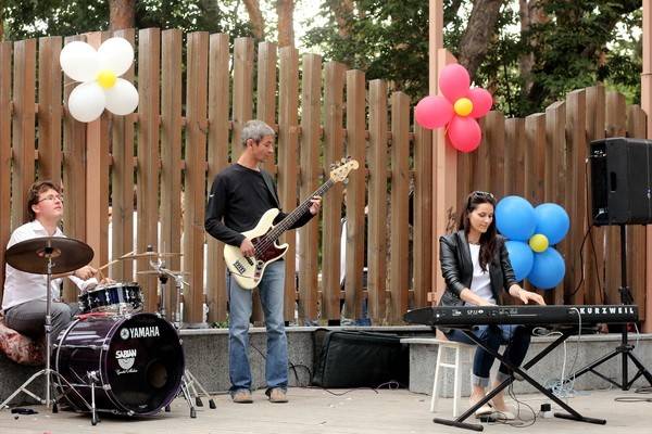 На сцене под открытым небом выступали юные таланты - воспитанники музыкальных школ № 8,9,11,12 и сложившиеся коллективы - Cheprasov Jazz Band, Трио «СВЕТОФОР», Дуэт электроскрипок FM.