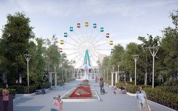В зоне аттракционов (2,31 га) основной композиционной доминантой станет колесо обозрения высотой до ста метров.