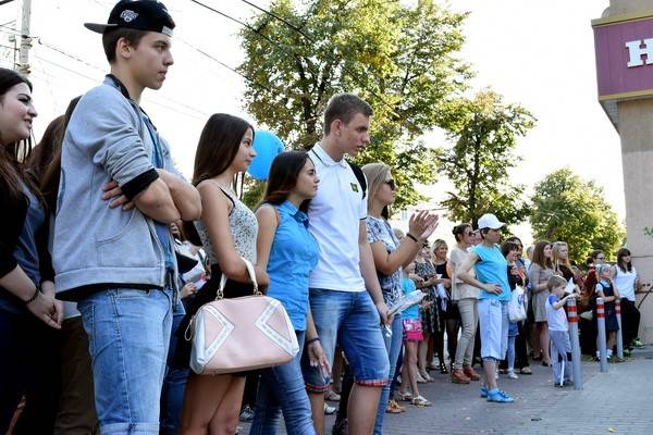 Главная улица Воронежа, которая когда-то называлась Большой Дворянской, но уже несколько десятилетий именуется проспектом Революции, стала местом притяжения десятков тысяч горожан. Они следовали двумя бесконечными потоками в обоих направлениях, останавливаясь там, где им было интересно.