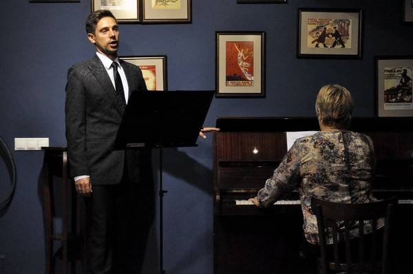 Второе отделение прошло в нижнем зале и было заполнено музыкой и стихами. Романсы на стихи Есенина прозвучали в прекрасном исполнении солиста Воронежского государственного театра оперы и балета Алексея Тюхина. Аккомпанировала певцу Мария Агибалова.