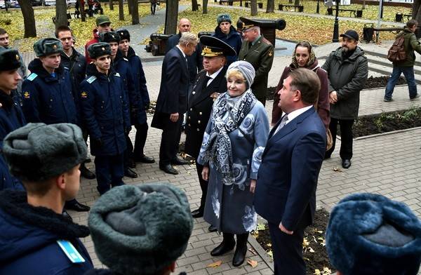 Помимо вдовы и дочери замечательного писателя в церемонии приняли участие председатель Общероссийского движения поддержки Флота, капитан первого ранга запаса, член правления Воронежского землячества в Москве Михаил Ненашев, адмирал, заместитель Главнокомандующего ВМФ России в 1991-1999 годах Иван Васильев, курсанты и преподаватели Военно-воздушной академии имени Н.Е. Жуковского и Ю.А. Гагарина.