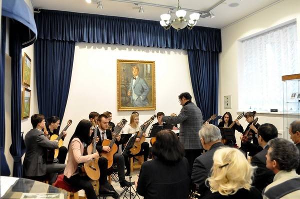 Об этом в приветственном слове говорил известный воронежский краевед Павел Попов. Музыкальное приношение музею сделал оркестр гитаристов Воронежского музыкального колледжа имени Ростроповичей «Большое барре» под руководством профессора Воронежского государственного института искусств Сергея Корденко. Оркестр начал с «Романса» из музыки Георгия Свиридова к повести Александра Пушкина «Метель». Несколько произведений в сопровождении оркестра исполнила сопрано Таисия Усольцева.