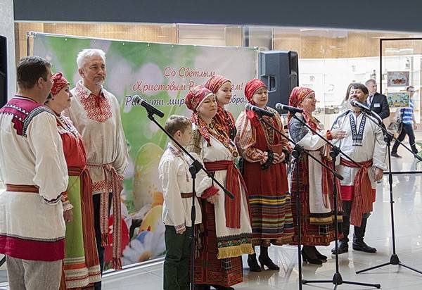 После слов приветствия под аплодисменты зрителей на сцену вышел фольклорный ансамбль «Паветье», который исполнил Пасхальные и праздничные народные песнопения.