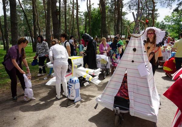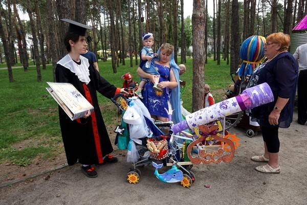 «Парад колясок 2016» трансформировался из праздничного шествия, как это было ещё несколько лет назад, в большой семейный фестиваль. Родители и малыши представили на суд жюри оригинальный дизайнерские решения в оформлении колясок. В этом году заметно преобладала тема космоса, астрономии, покорения межпланетного пространства. Год-то особенный – исполнилось 55 лет со дня полёта первого человека в космос!