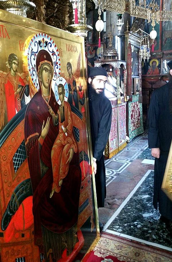 Новонаписанный образ был принесен монахами в соборный храм Ватопедского монастыря. Митрополит Сергий совершил освящение иконы и приложил старинный чудотворный образ к новонаписанному лику. При торжественном событии присутствовал настоятель Ватопедского монастыря архимандрит Ефрем и братия святой обители.