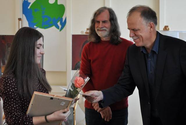 Из нескольких десятков работ десятков юных художников комиссия выбрала пять. Пять студенток и получили заветный дипломы и конверты от Александра Бубнова. Вот их имена: Виктория Лукина, Ангелина Стрельникова, Жанна Застрожнова, Карина Небольсина и Ангелина Пищик. Девушки действительно талантливы, их дар наверняка с годами только разовьётся.