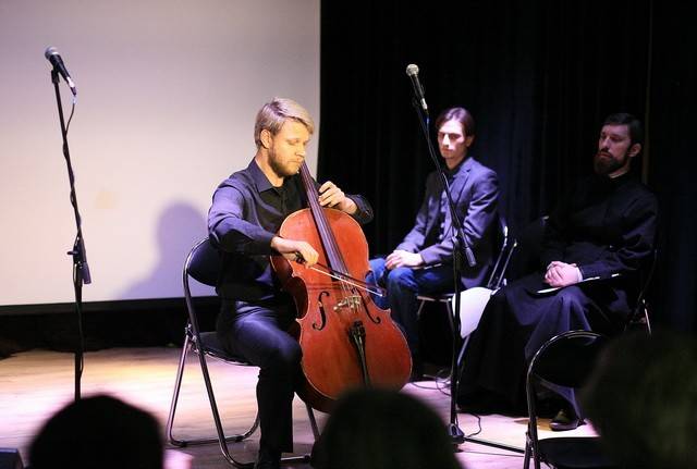 В глубоком внутреннем единстве, разделяя боль и сострадание к историческим судьбам вместе с сонмом поэтических голосов, прозвучал «Вокализ» Сергея Рахманинова в исполнении Антона Андреева (виолончель), студента Воронежского государственного института искусств.