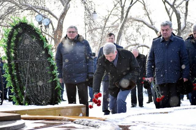 Торжественное шествие к монументу и Вечному огню возглавила рота почетного караула Воронежского гарнизона. Затем венки и цветы к мемориалу возложили представители официальных делегаций.