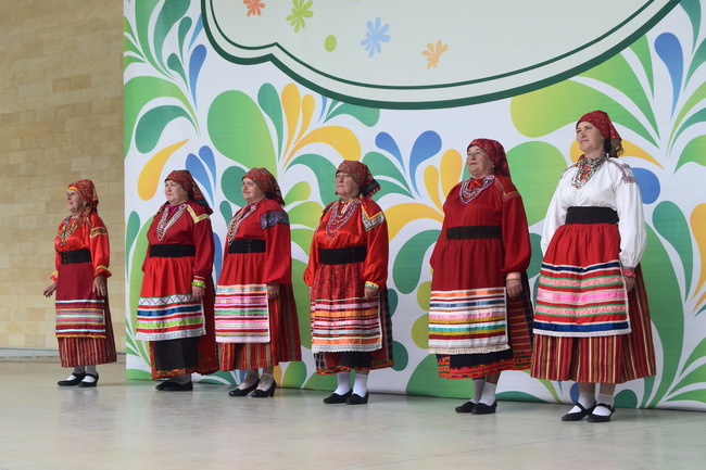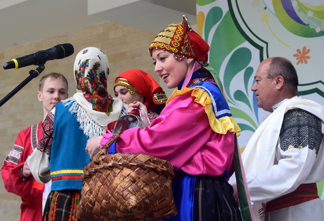 Зрителей сегодня ожидал сюрприз сюрприз – конкурс под названием «Бабушкин сундук», в котором каждый желающий, у кого был орнамент или вышивка с этническими элементами, мог подняться на сцену и рассказать свою историю. Участие в конкурсе приняли как взрослые, так и дети. Удивительно, что у многих конкурсантов были вещи (бусы, сарафаны), которым большее ста лет, причём, они передаются из поколения в поколения. И это прекрасно, когда совсем юные зрители интересуются историей и культурными традициями.